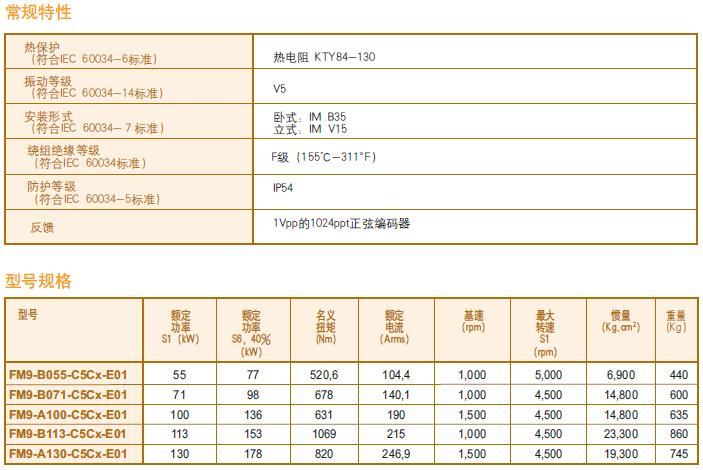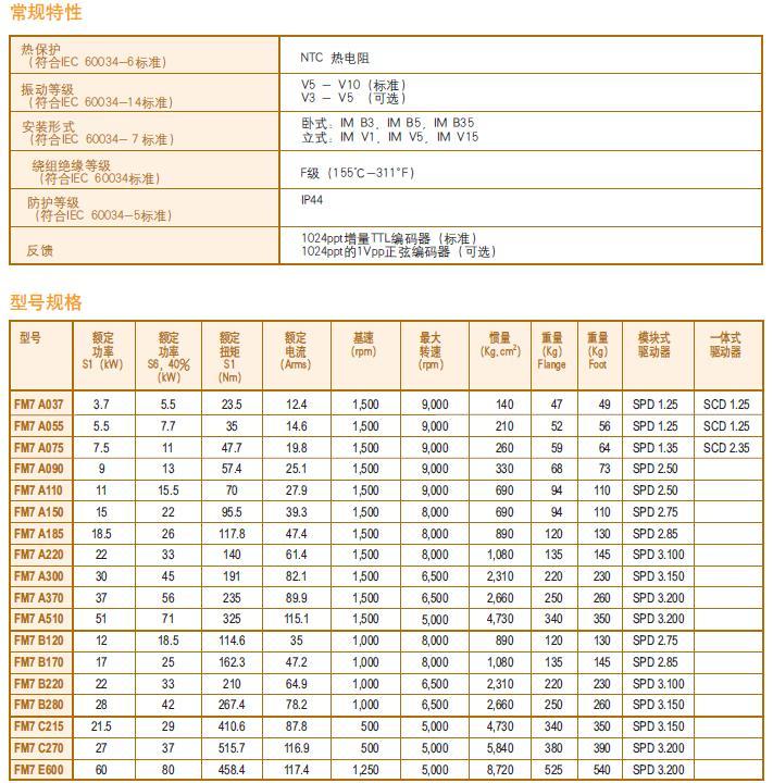 发格伺服主轴电机(交流异步电机):FM7系列 与 FM9系列